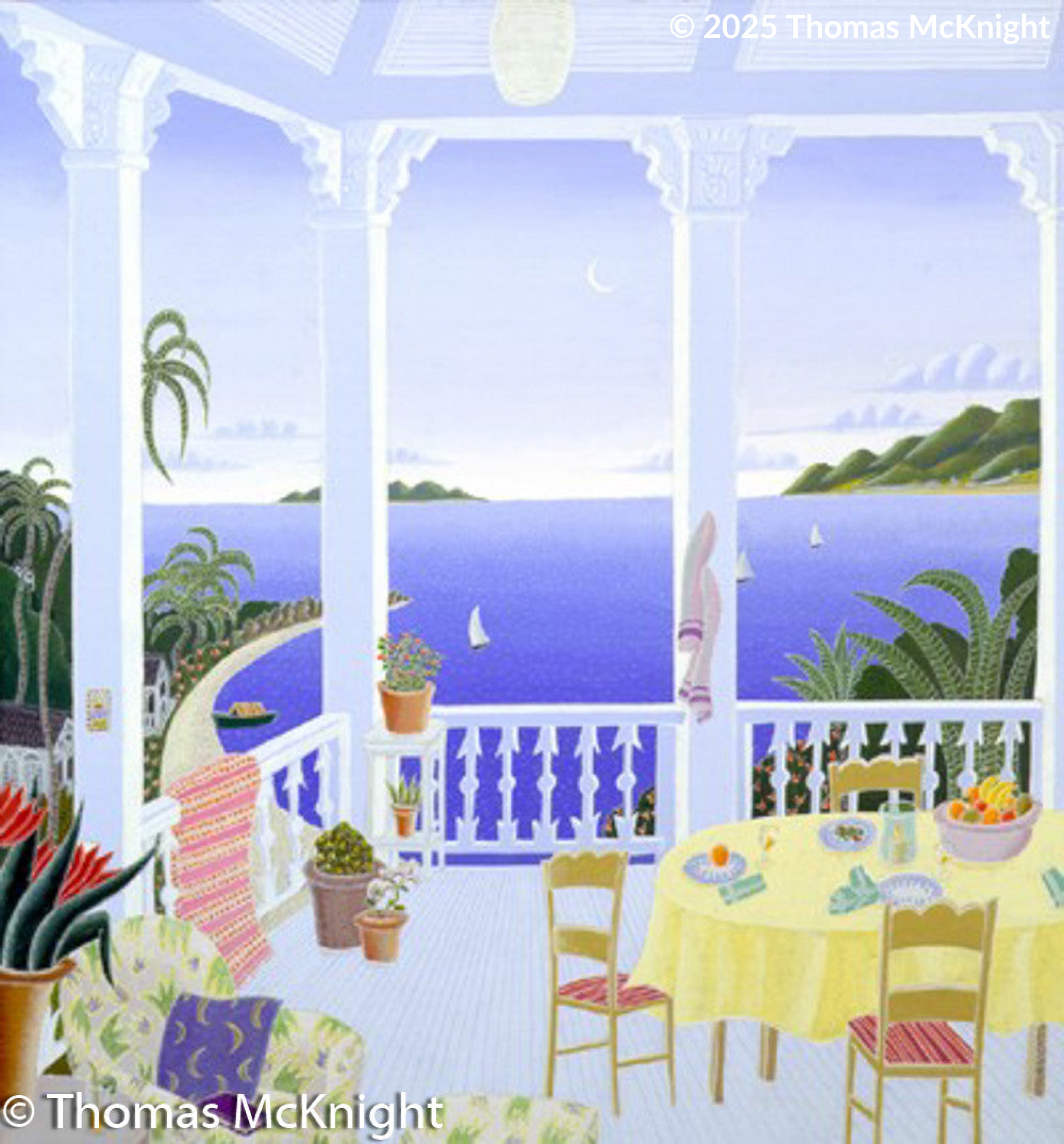 Thomas McKnight is a renowned contemporary artist known for his surreal interiors and Mediterranean dreamscapes that invite you to experience the unfettered joy of living. One of the most widely collected artists of his generation, McKnight’s style spans mythology, architecture and vibrant Aegean landscapes.